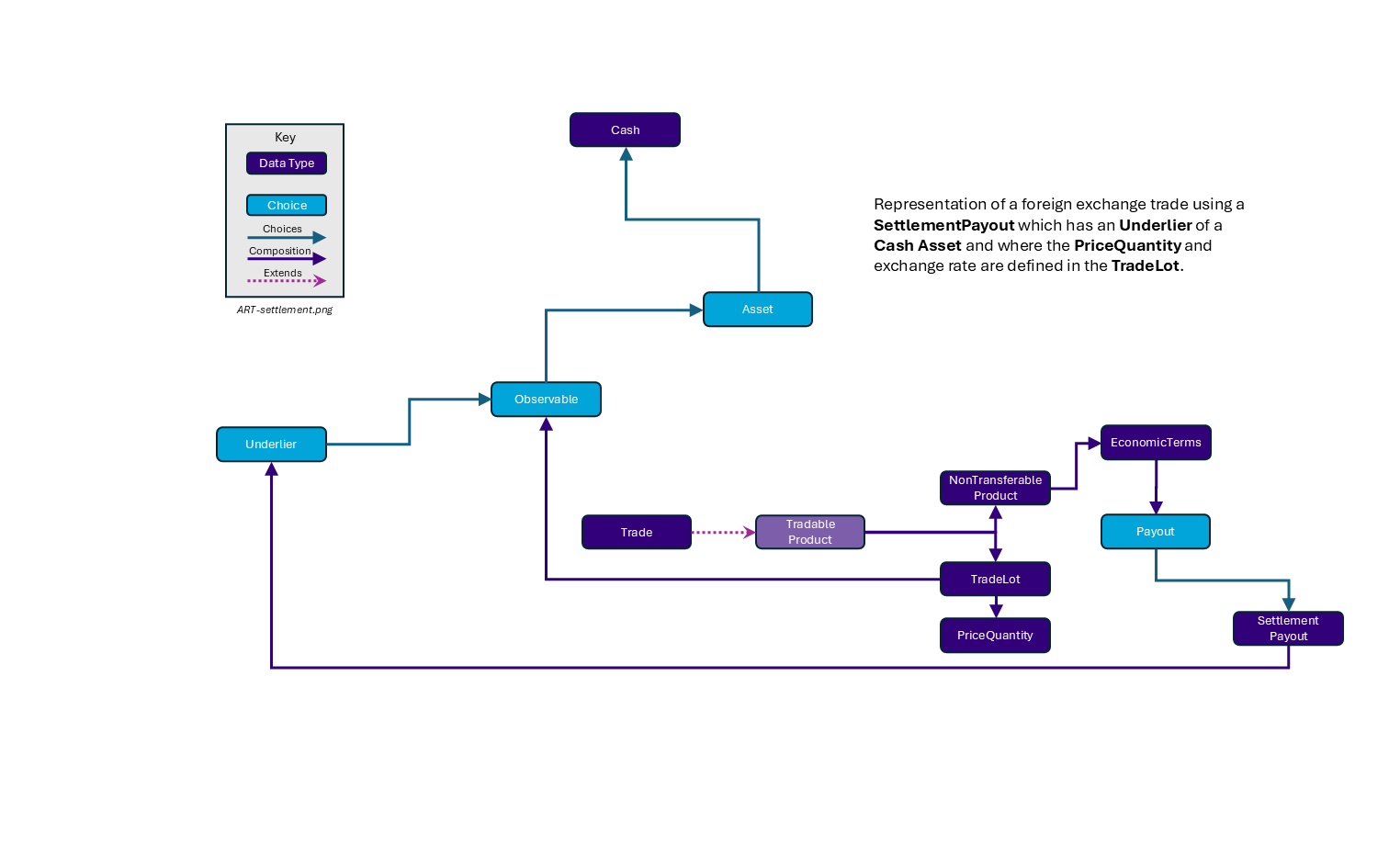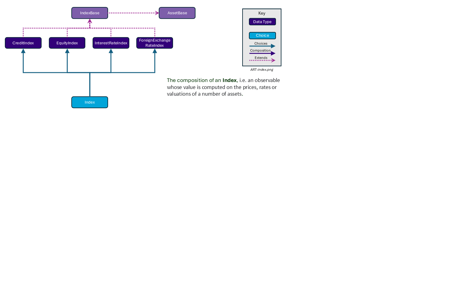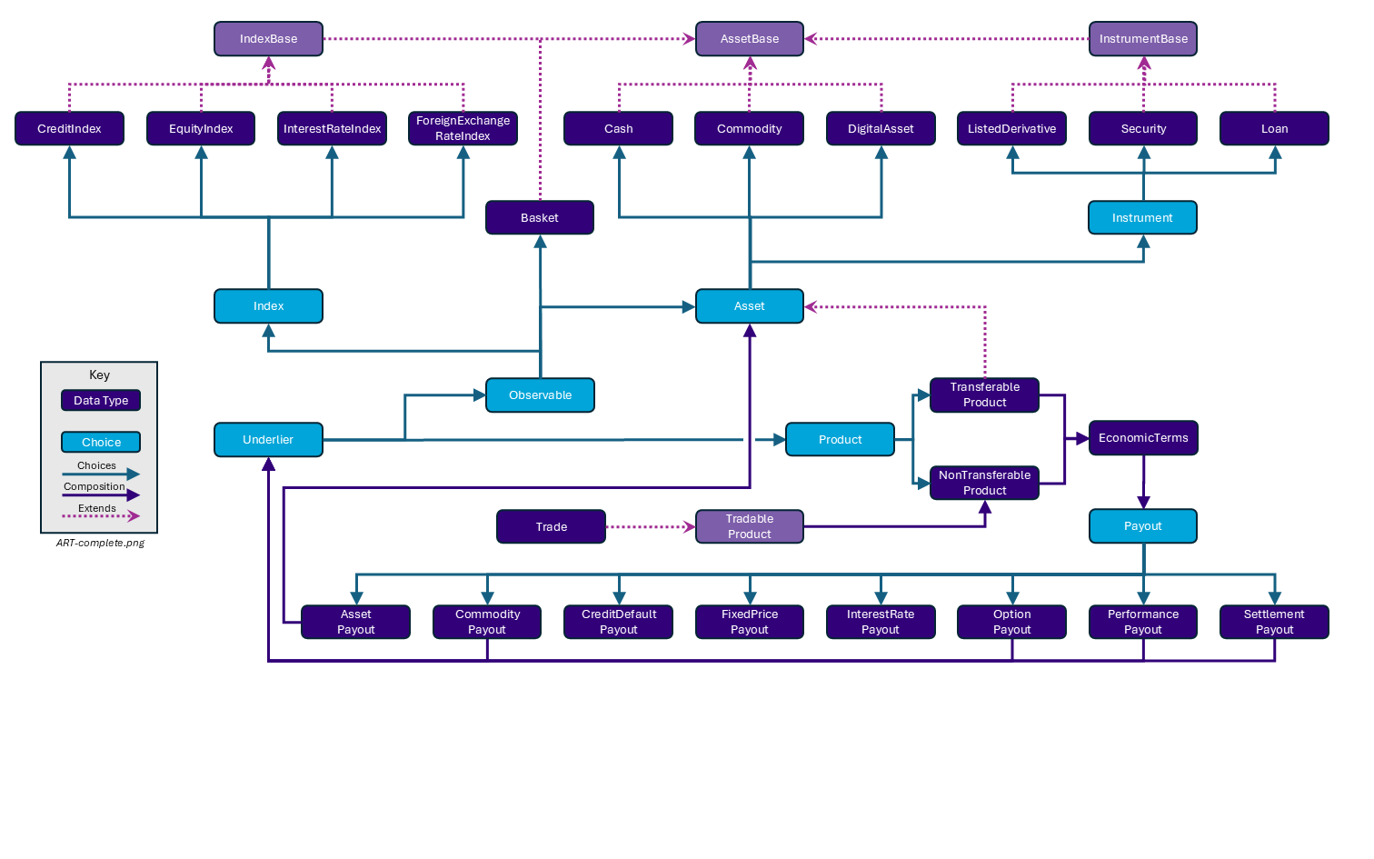 Each of the choice values are defined as data types within the model and each also extends a common base type