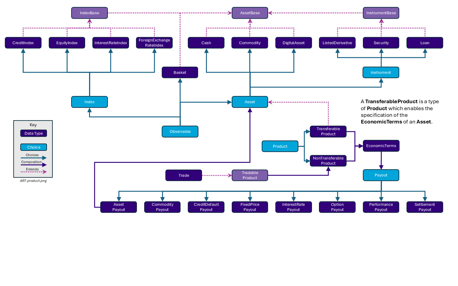 CommodityProductDefinition. - DigitalAsset: An Asset that exists only in digital form, eg Bitcoin or Ethereum; excludes the digital representation of other Assets.
